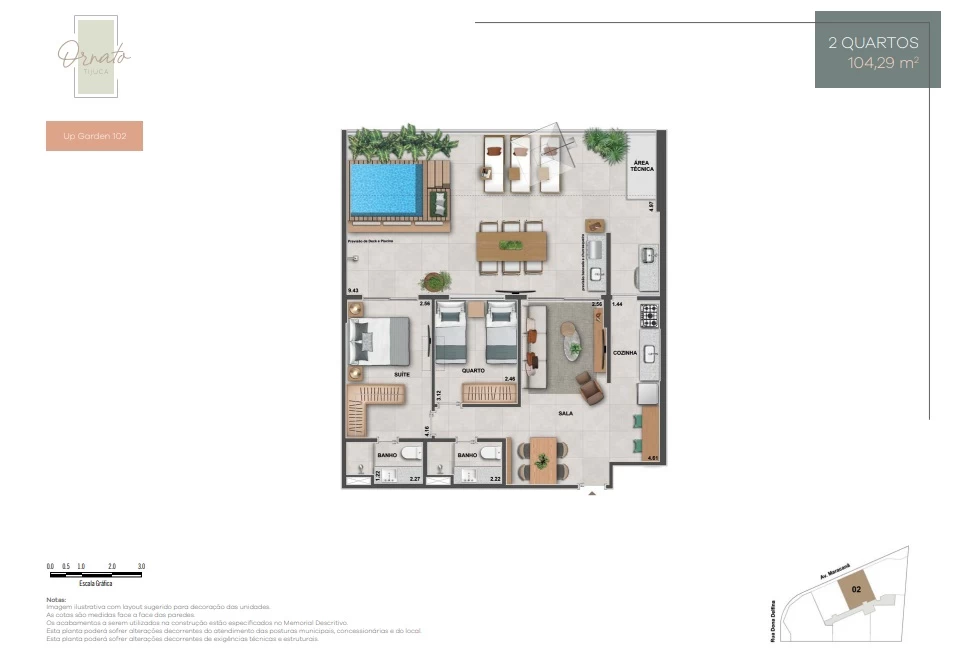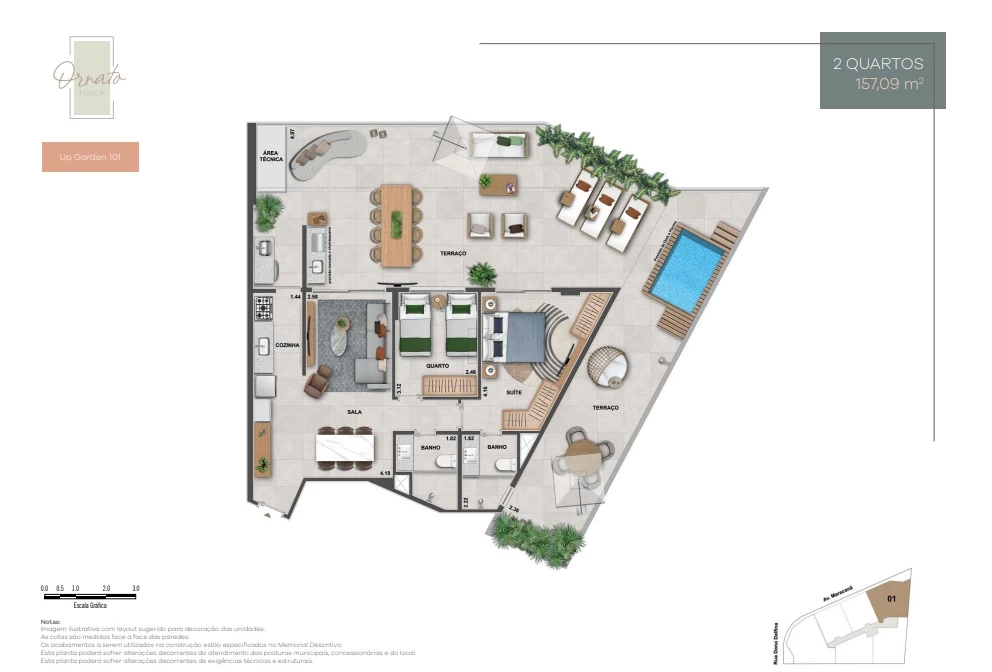 Garden com 2 quartos, com uma suíte 104m² a 157m².