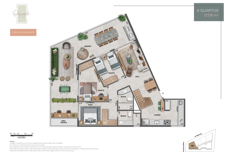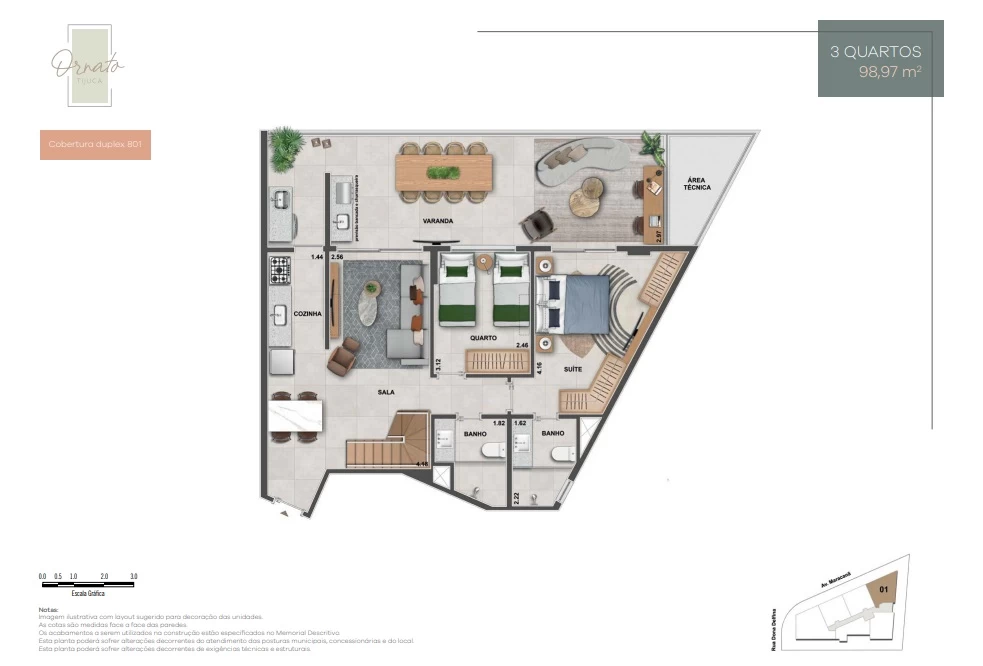 Cobertura Duplex com 3 quartos e duas suítes de 162m² a